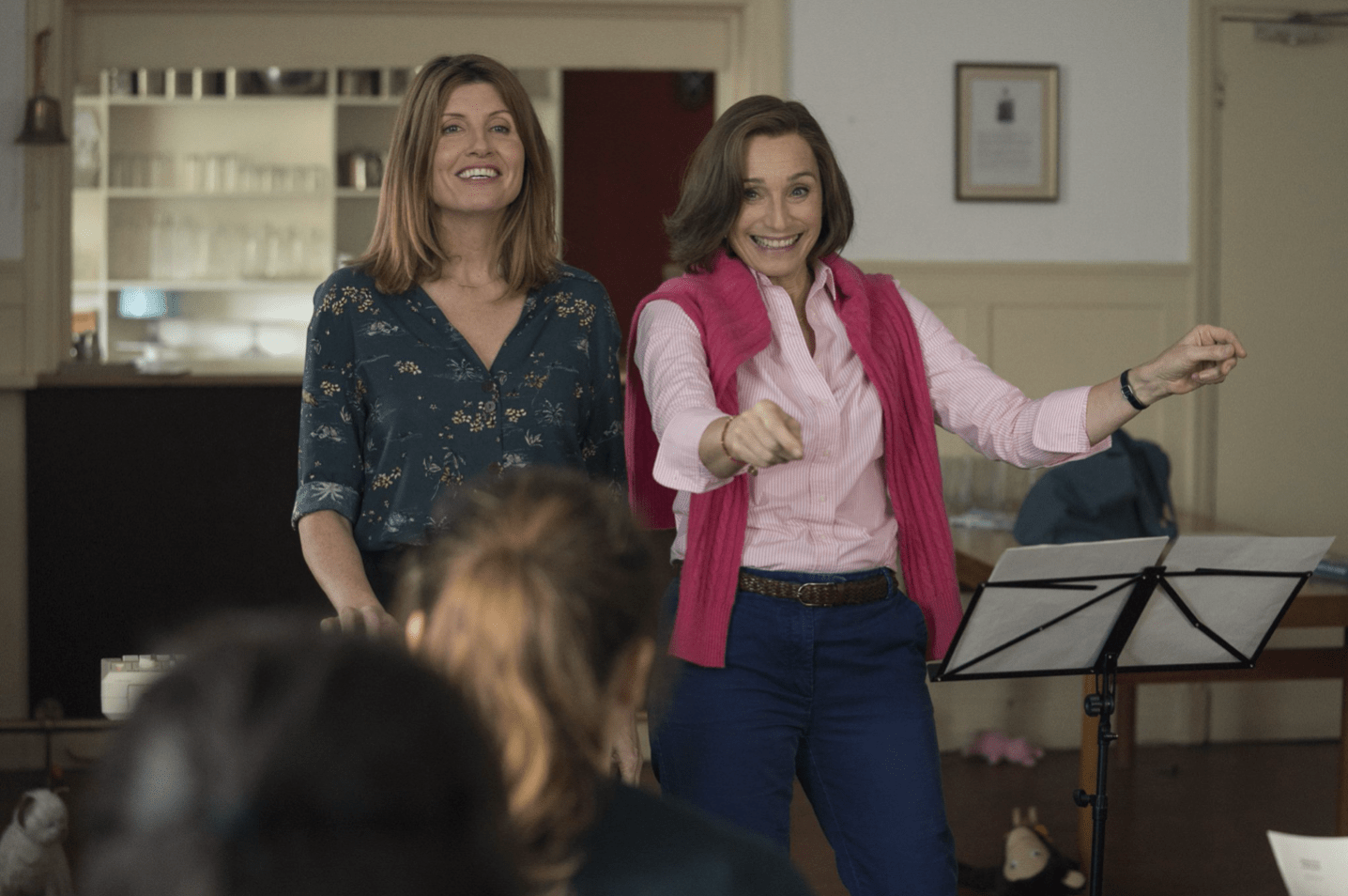Horgan’s Lisa is a trendy, next-gen army wife – we know this because she wears converse, drinks beer and can’t knit. She doesn’t want anything to do with the choir, but she’s obligated because of her husband’s recent promotion. Scott Thomas plays Kate, the colonel’s wife and a stuck-up, stiff-upper-lip stick-in-the-mud who offers Lisa her unwanted ‘help’ to distract herself from the loss of her son.